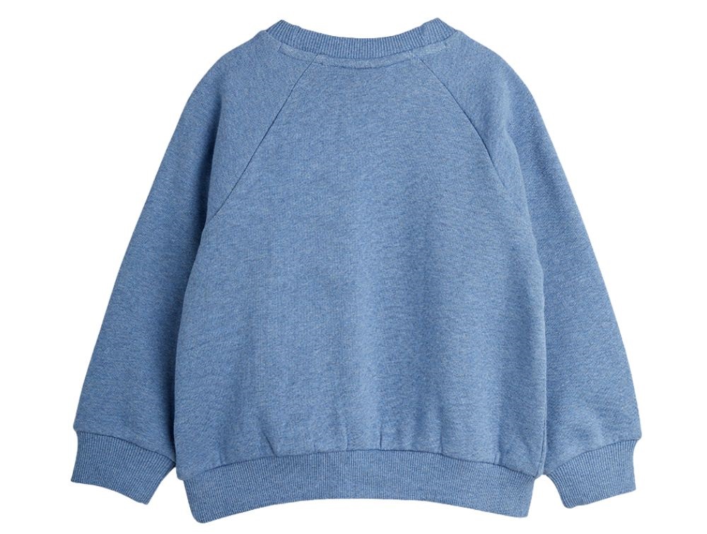 Blå-meleret Mini Rodini sweatshirt med sort pantermotiv foran 1100029960 blueBlå-meleret Mini Rodini sweatshirt med sort pantermotiv foran 1100029960 blueSort pantermotiv på Blå-meleret Mini Rodini sweatshirt 1100029960 blueBlå-meleret Mini Rodini sweatkvalitet med rib i hals, ærmer og bund 1100029960 blue
