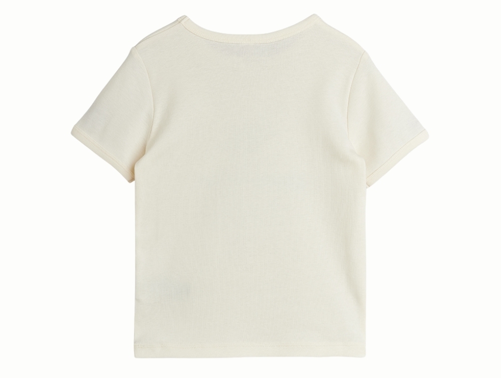 T-shirt i råhvid nuance fra Mini Rodini med Space Tour print på fronten.