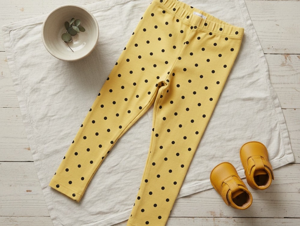 Gule leggings med prikker fra Mini Rodini.