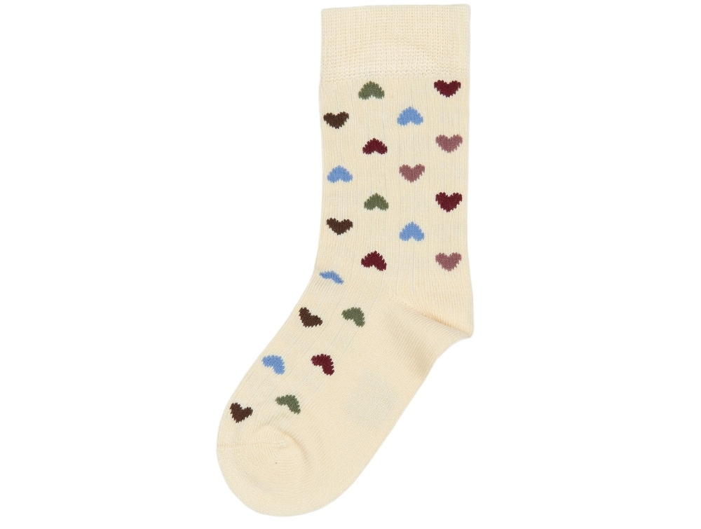 3-pak bambusstrømper med hjerter fra MiniPop heart mixBambusstrømpe med multifarvede hjerter på beige bund fra MiniPopBambusstrømpe med lilla hjerter på beige bund fra MiniPopRibstrikket bambusstrømpe i rosa med hvide hjerter fra MiniPop