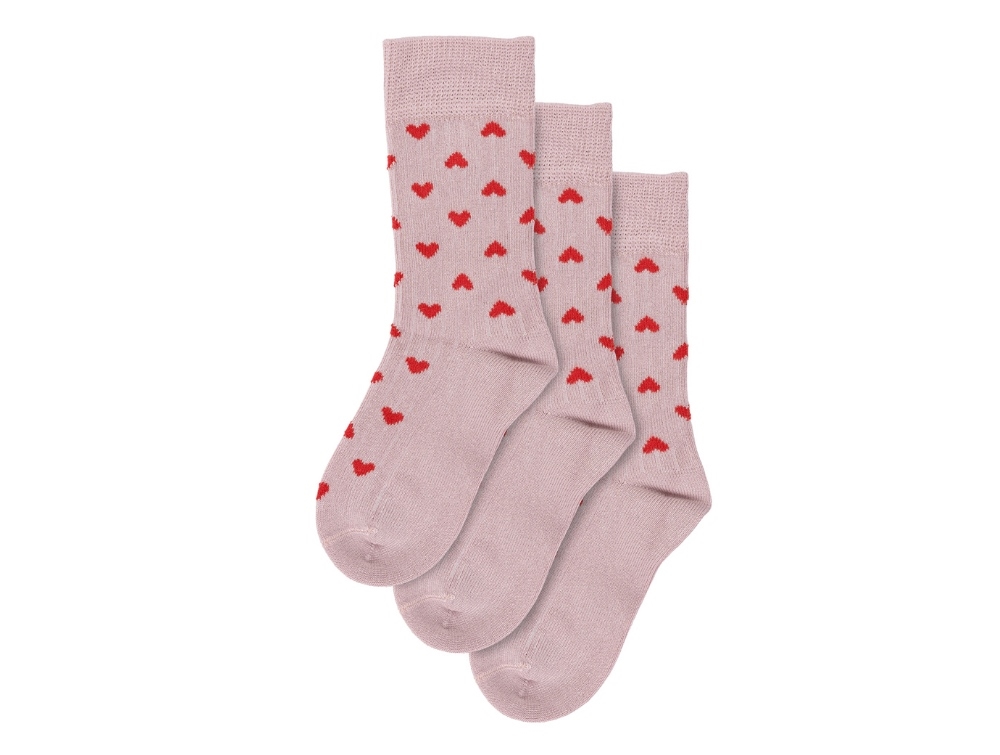 MiniPop bambus strømper 3-pak i rosa med røde hjerter og sømløs tåsøm