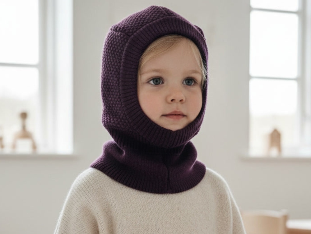 Elefanthue i farven plum perfect fra MP i 100% merinould udvendigt og 100% bomuld indvendigt.