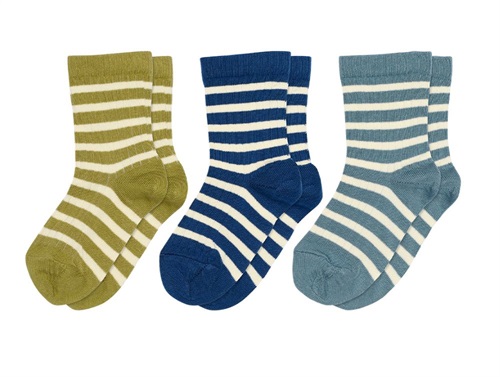 3-pak strømper fra MP i blå og grønne nuancer med striber.