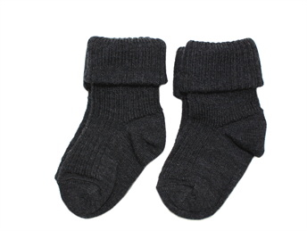 MP uldstrømper mørkegrå melange med ribkant