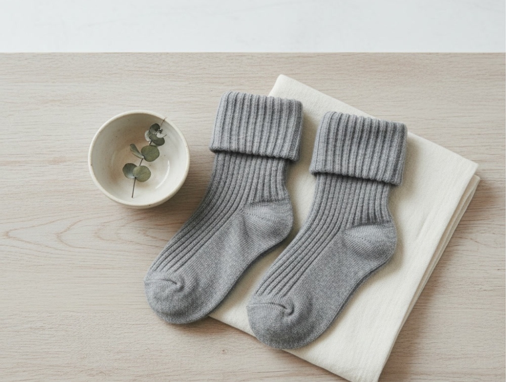 MPkids baby strømper i grå rib med foldet kant og blød bomuld