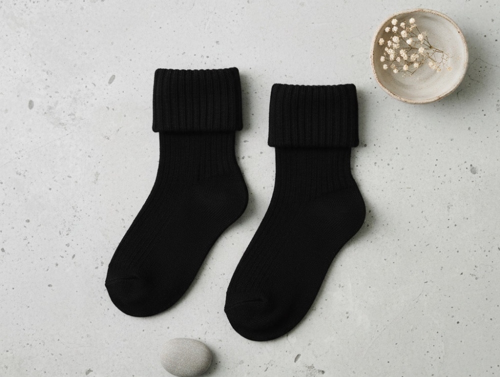 MPkids strømper i sort rib med foldet kant og blød bomuld