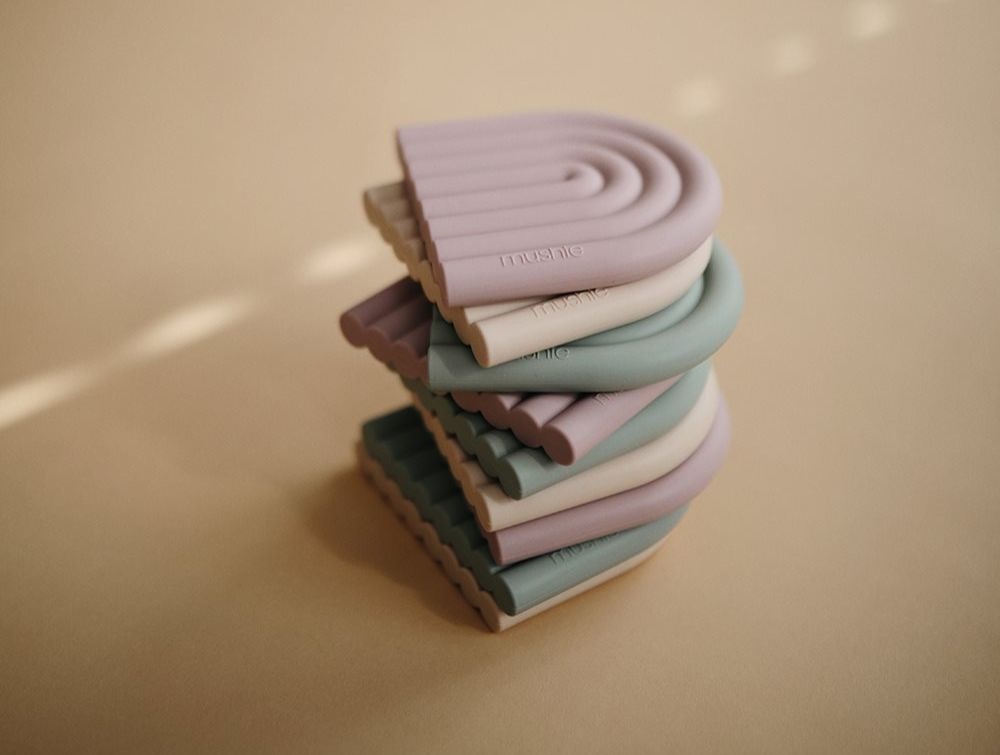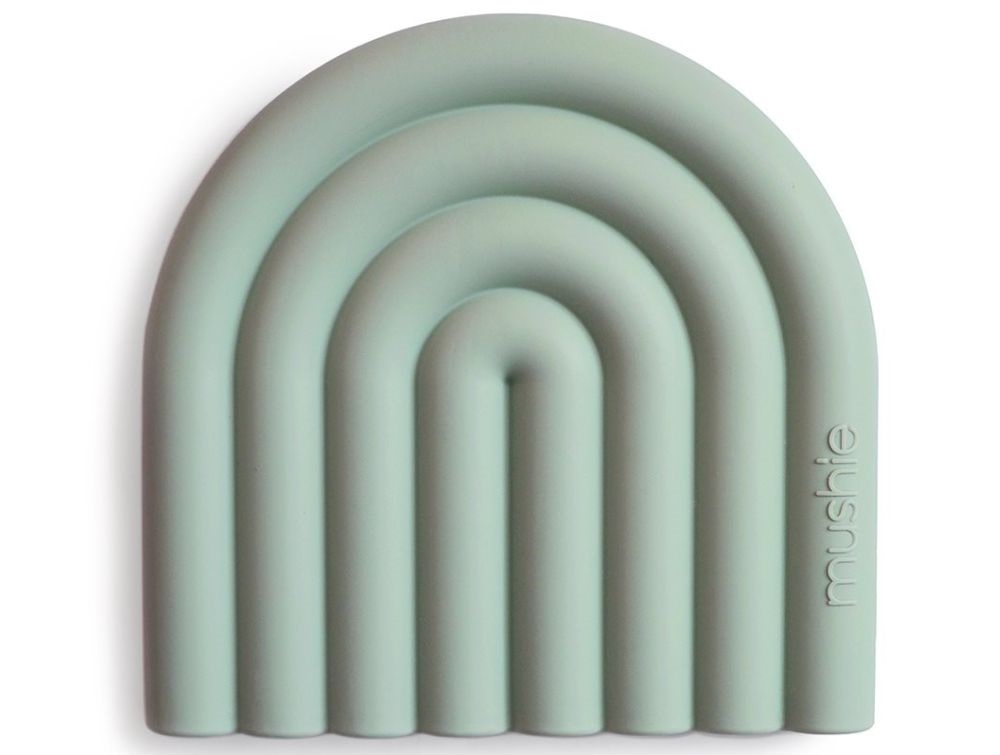 Regnbue bidelegetøj fødevaregodkendt silikone i farven cambridge blue fra Mushie.