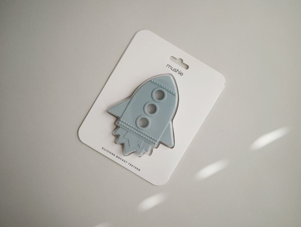 Raket bidelegetøj fødevaregodkendt silikone i farven cloud fra Mushie.