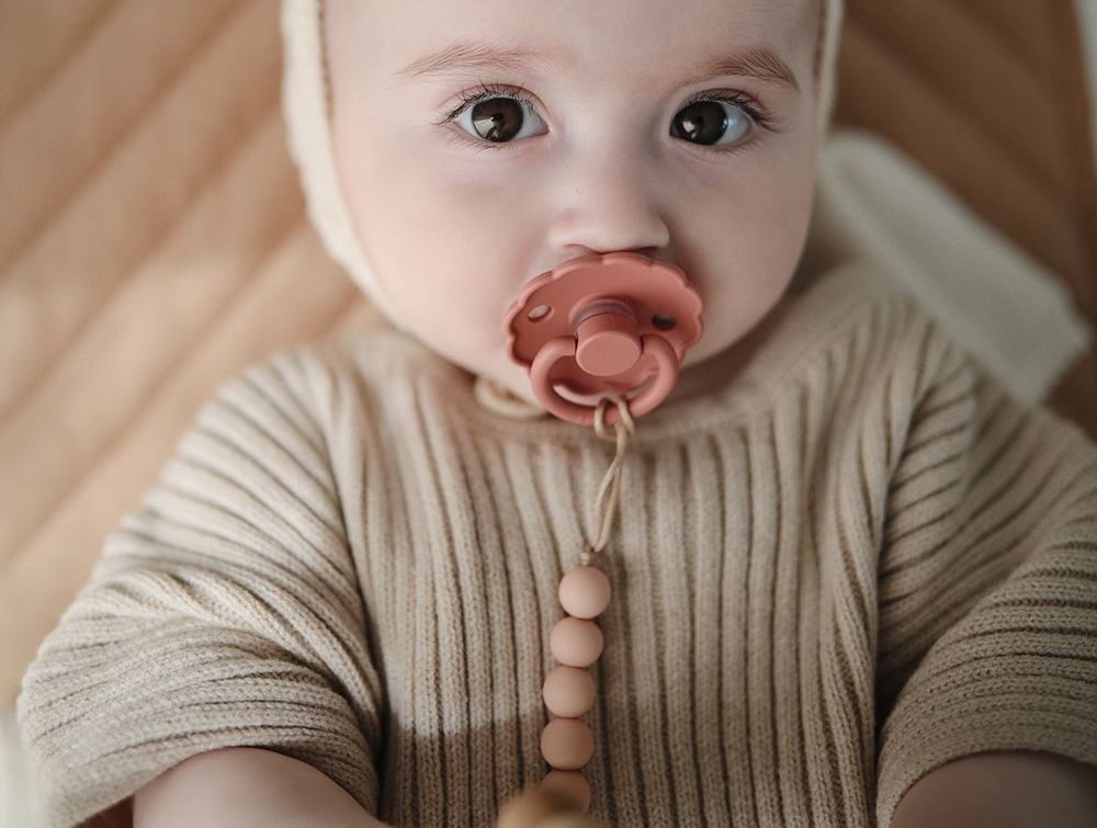 Med en suttesnor fra Mushie vil din babys sut være sikkert fastgjort til tøjet. Suttesnoren forhindrer sutten i at blive væk eller falde på gulvet og giver din baby nem adgang til selvberoligelse, når der er behov for det. Suttesnoren sørger for, at sutten altid er inden for rækkevidde. Kombinér suttesnoren med din babys yndlingssut.
