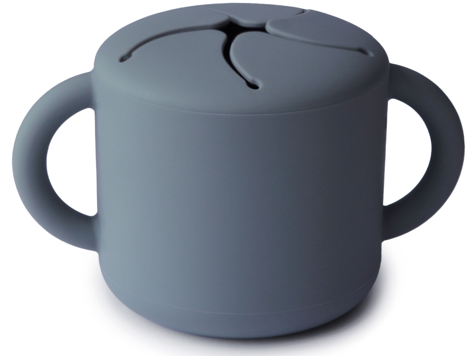 Super praktisk snack kop i blød silikone til de yngste i farven tradewinds fra Mushie.