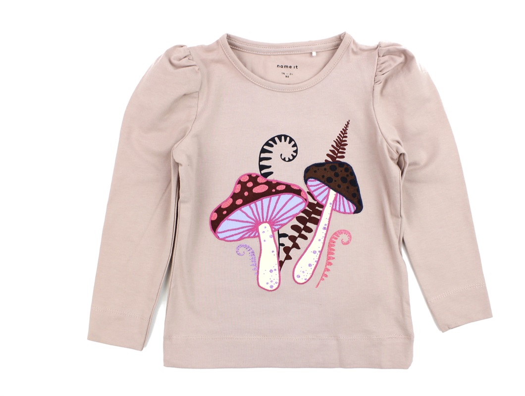 Langærmet top i farven adobe rose med svampeprint og broderi fra Name It.