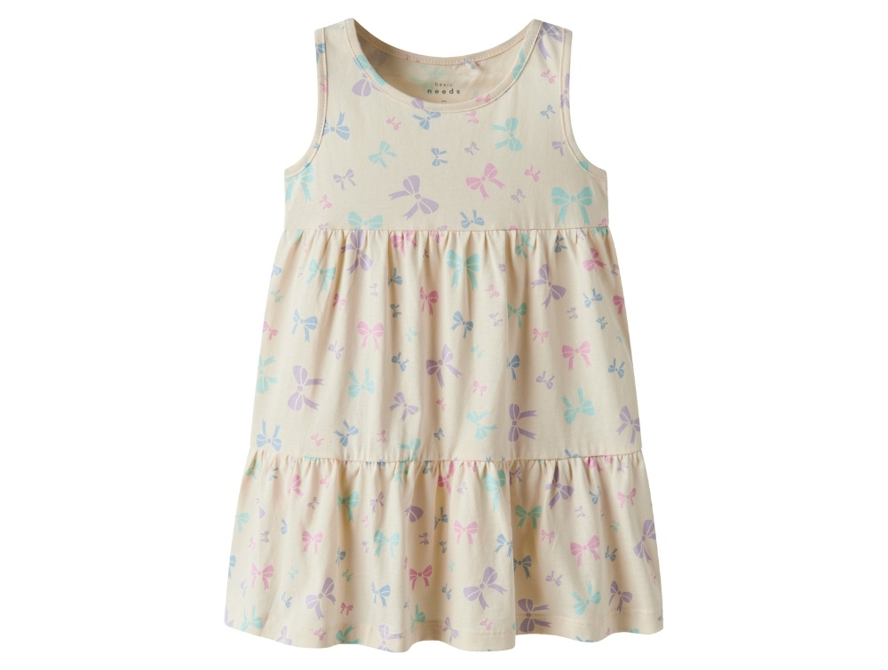Ærmeløs kjole i buttercream med sløjfeprint fra Name It.