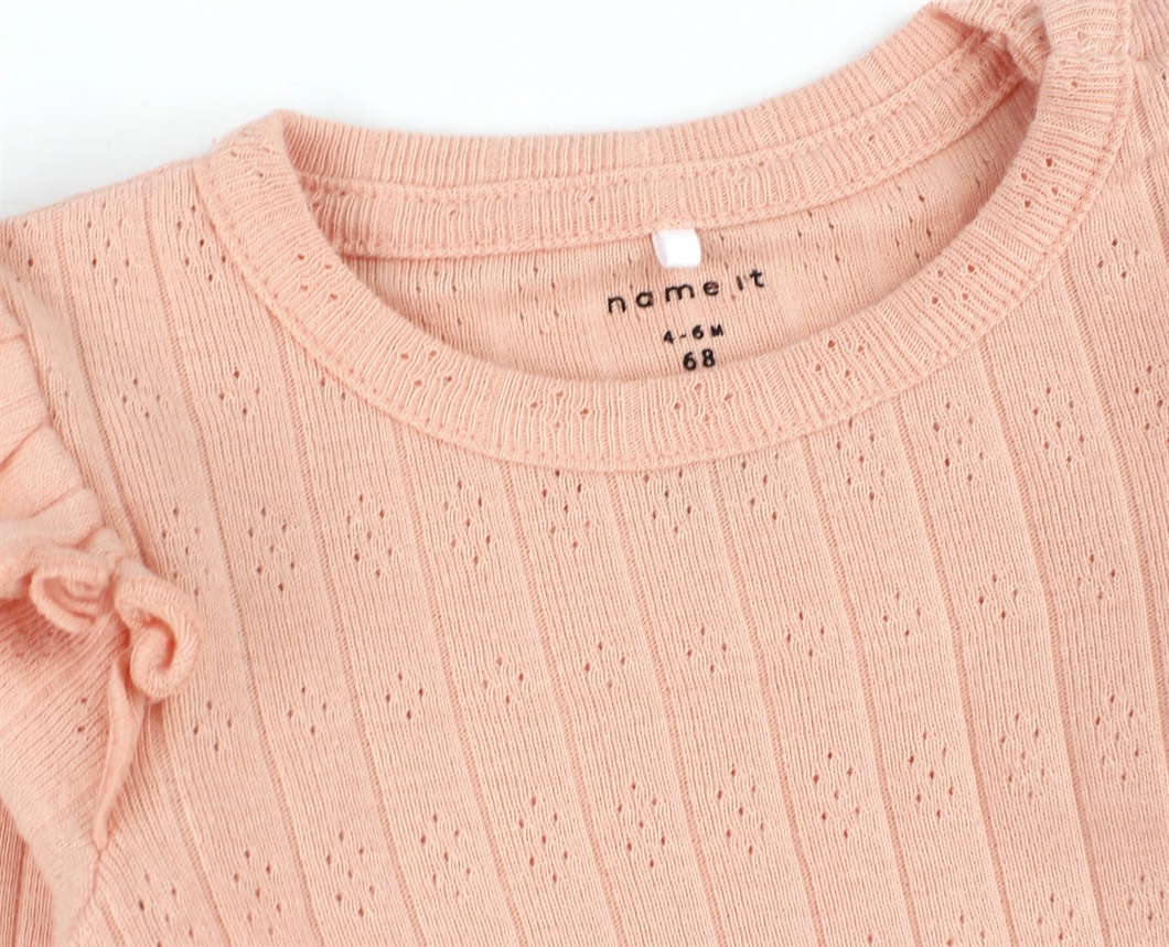 Langærmet body i farven apricot blush med flæser fra Name It.