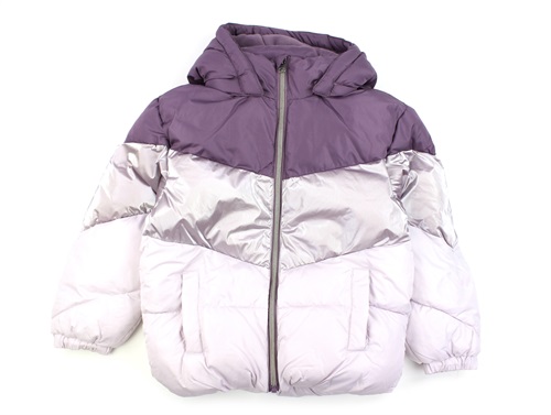 Vinterjakke i puffer i farven arctic dusk med aftagelig hætte med trykknapper fra Name It.