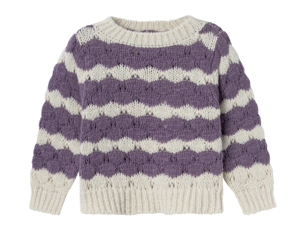Skøn strik i farven arctic dusk med stribet mønster fra Name It.