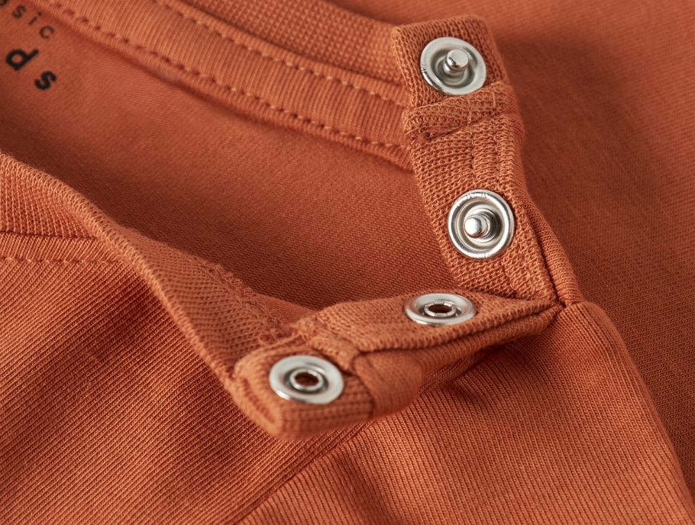 Body i varm rustfarvet nuance (autumn leaf) fra Name It BABY med små planetmotiver. Den bløde jerseykvalitet med stræk sikrer god bevægelighed og høj komfort for de mindste.