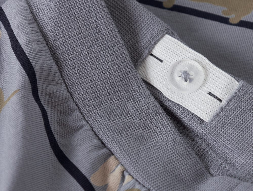 Bukser i blågrå nuance (tradewinds) fra Name It. De har et sjovt print med hunde og striber, der giver et legende udtryk, mens den bløde jerseykvalitet føles behagelig mod huden.
