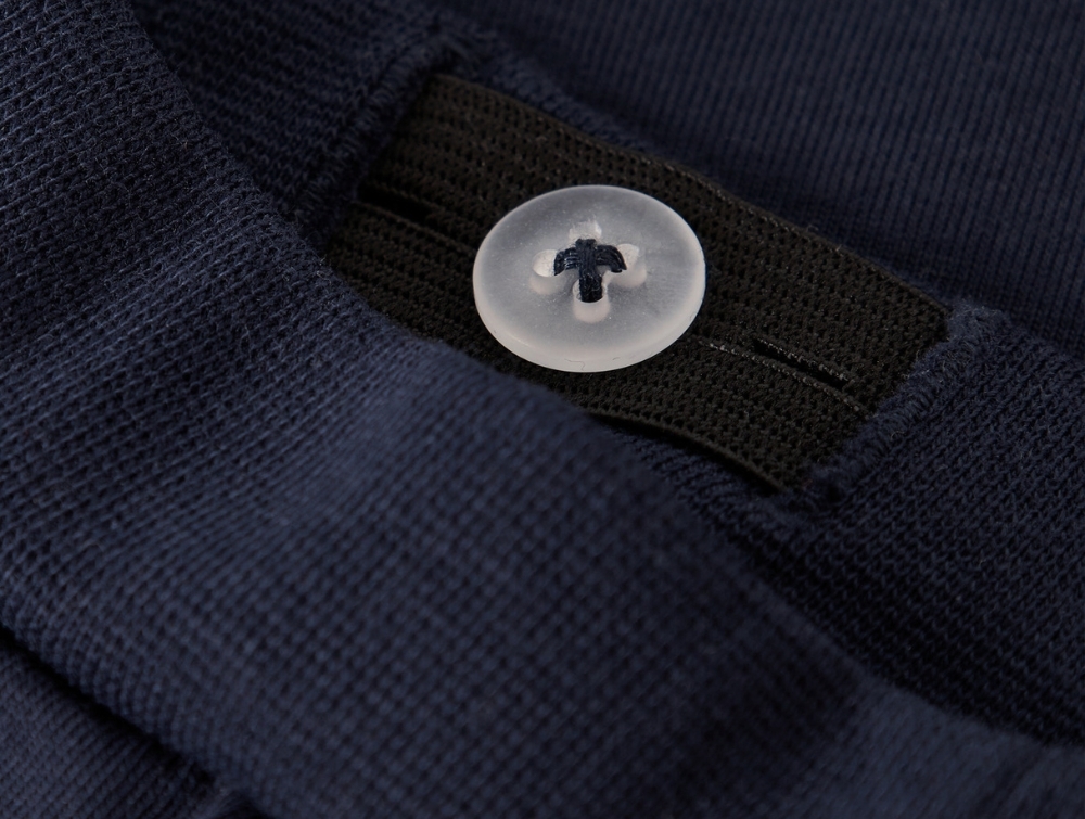 Bukserne har justerbar elastik i taljen med knap og indvendig stramning samt fastgjort snøre foran. Ribkanter ved anklerne giver en god pasform, og modellen har almindelig pasform.