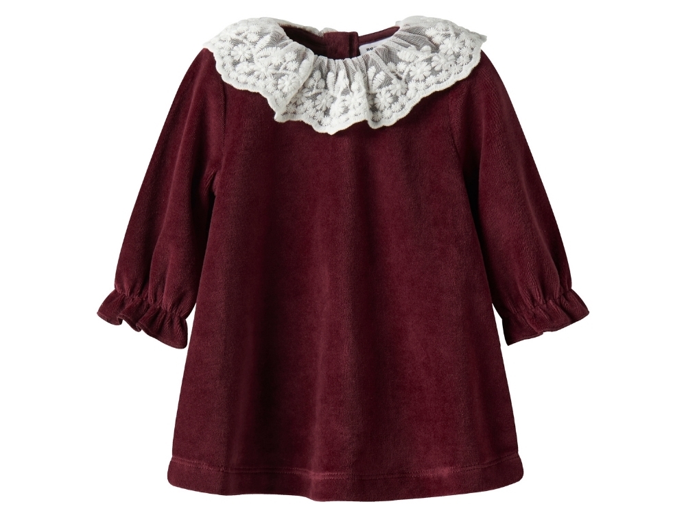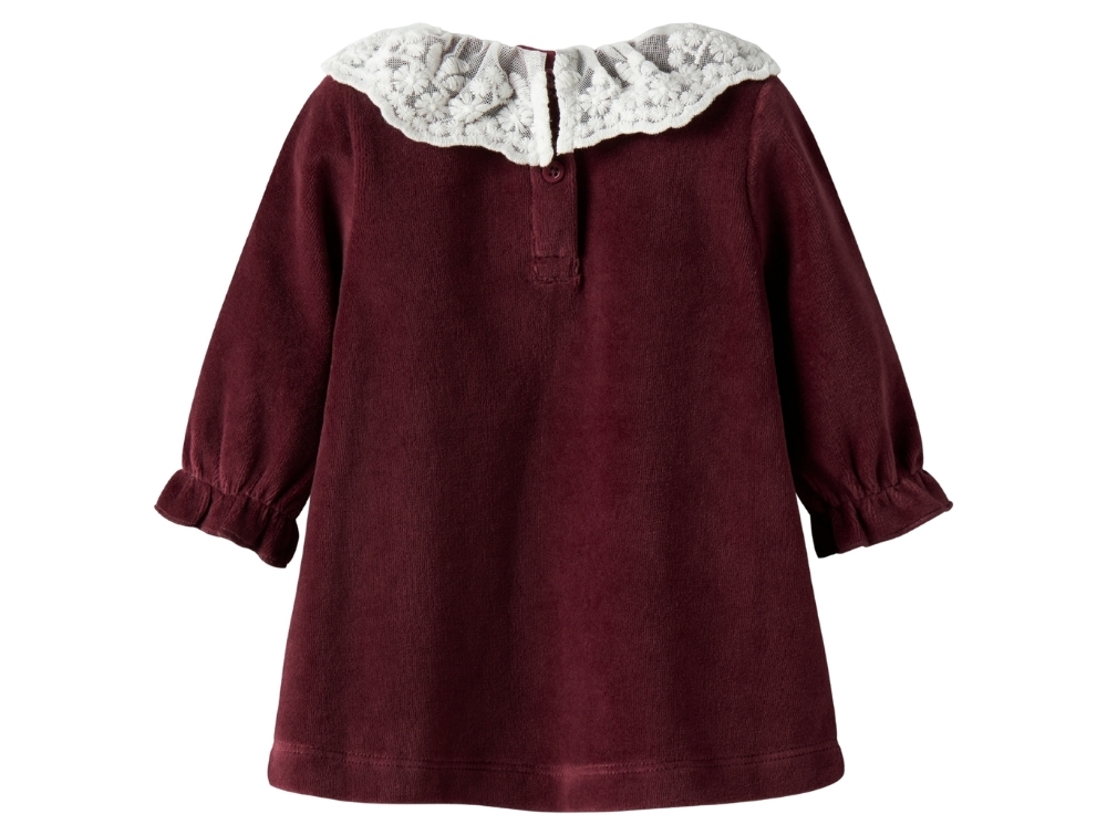 Name It Baby velourkjole burgundy med blondekrave forsideName It Baby velourkjole burgundy med blondekrave detaljeName It Baby velourkjole burgundy med blondekrave bagside