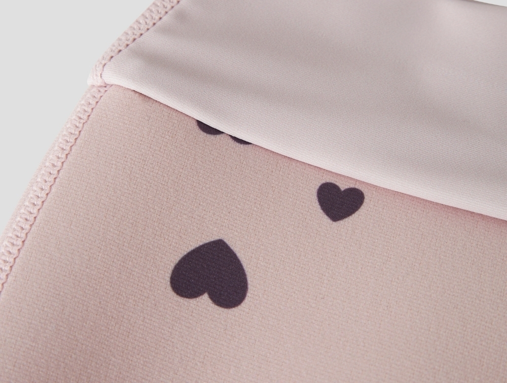 Designet har et enkelt hjerteprint og elastiske benåbninger, som hjælper med at holde badebuksen på plads under badning.