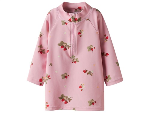 Lyserød UV-badebluse med jordbærprint og lynlås fra name It 13226592 fragrant lilacLyserød UV-badebluse med jordbærprint fra Name It 13226592 fragrant lilacLynlås i lyserød UV-badebluse med jordbærprint fra Name It 13226592 fragrant lilac