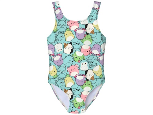 Badedragt i en flot blå nuance fra Name It med et farverigt Squishmallows-print over hele overfladen. Fremstillet af polyamid med elastan, hvilket giver en fleksibel og behagelig pasform.