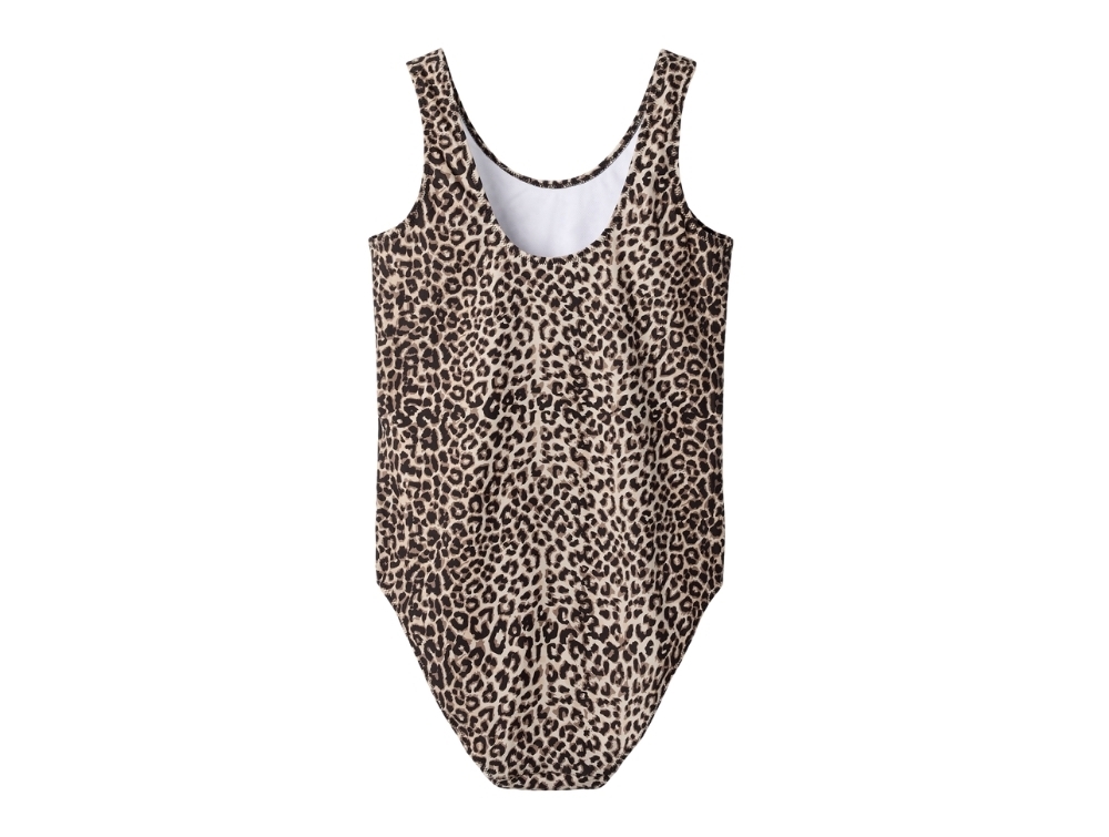 Name It badedragt leopardprint til børnDetaljebillede af Name It badedragt leopardprint brun og beigeName It badedragt leopard til børn bagfra