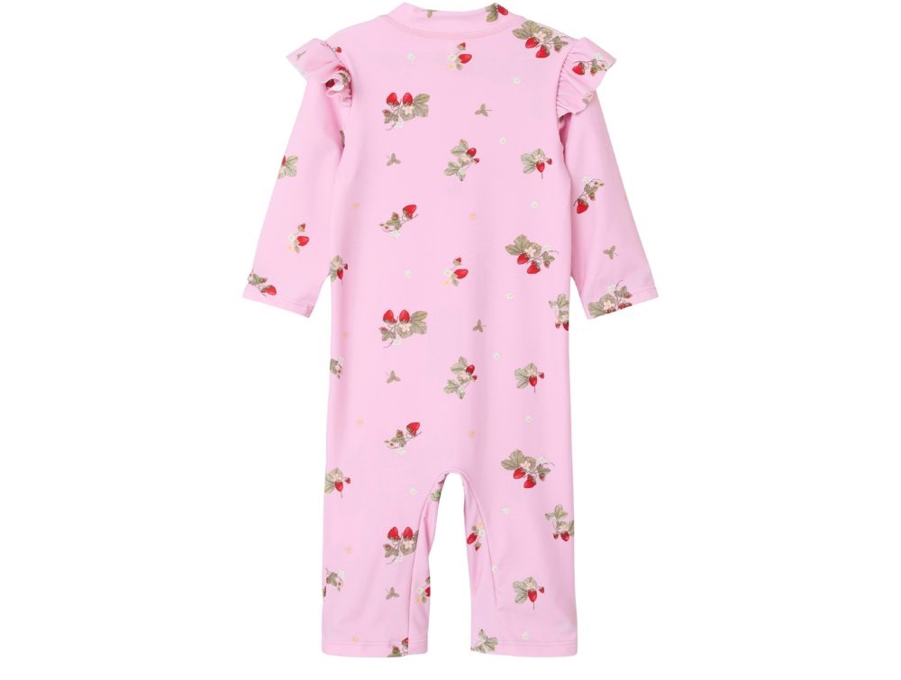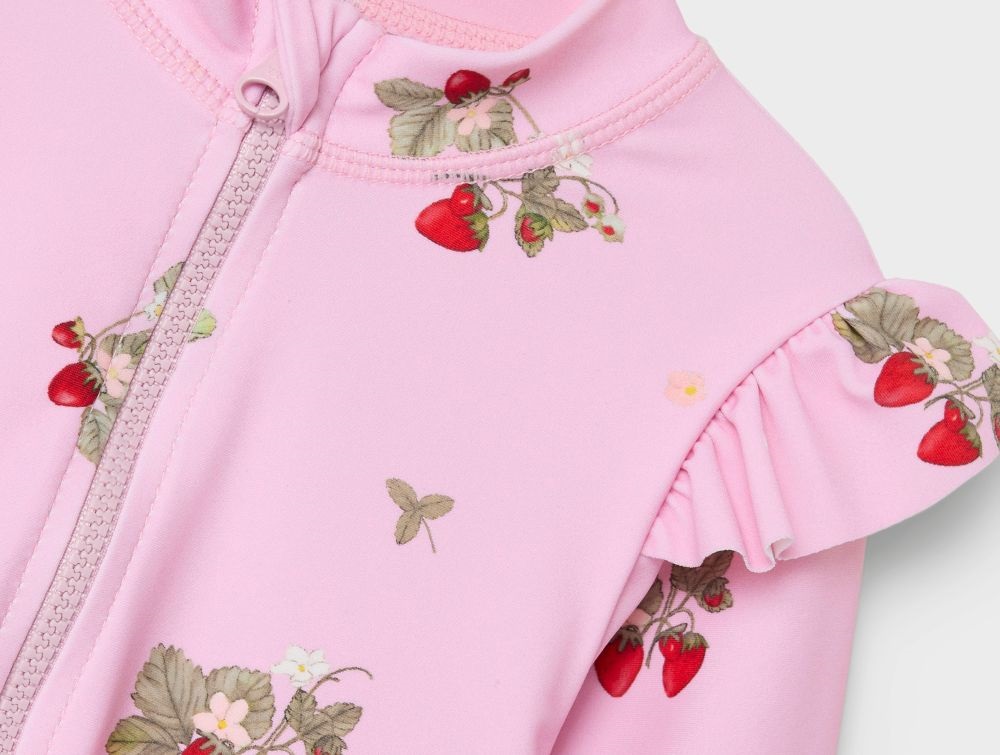 Lyserød UV-badedragt med jordbærprint fra Name It 13226591 fragrant lilacLyserød UV-badedragt med jordbærprint fra Name It 13226591 fragrant lilac bagfraLynlås i lyserød UV-badedragt med jordbærprint fra Name It 13226591 fragrant lilac