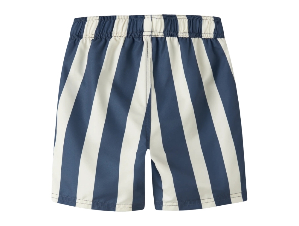 Name It badeshorts blå og råhvid med striberName It badeshorts blå og råhvid striber talje detaljeName It badeshorts blå og råhvid striber bagfra
