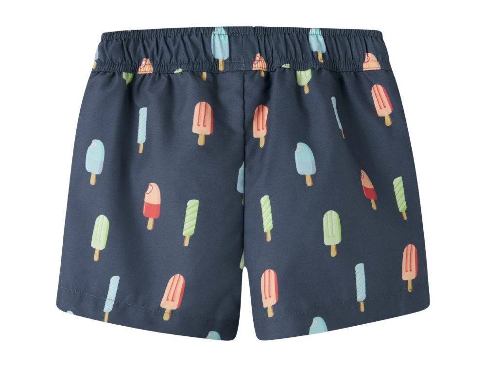 Badeshorts i blå nuance (Vintage Indigo) fra Name It med farverigt allover print af ispinde.