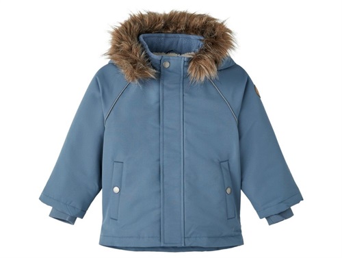 Vinterjakke i farven bering sea med aftagelig hætte med trykknapper fra Name It.
