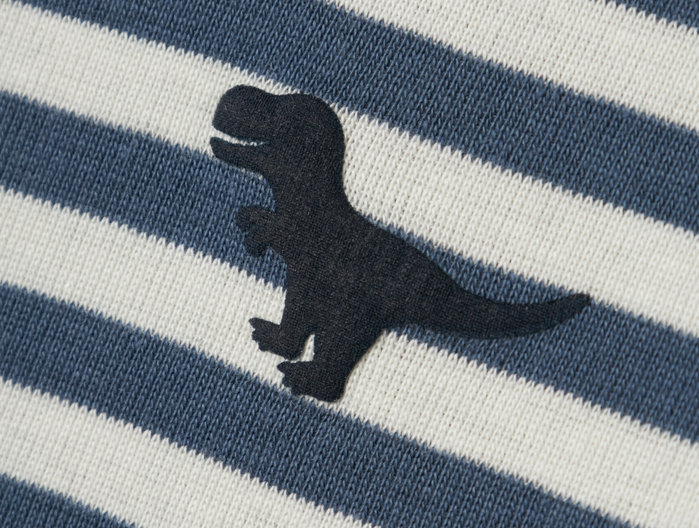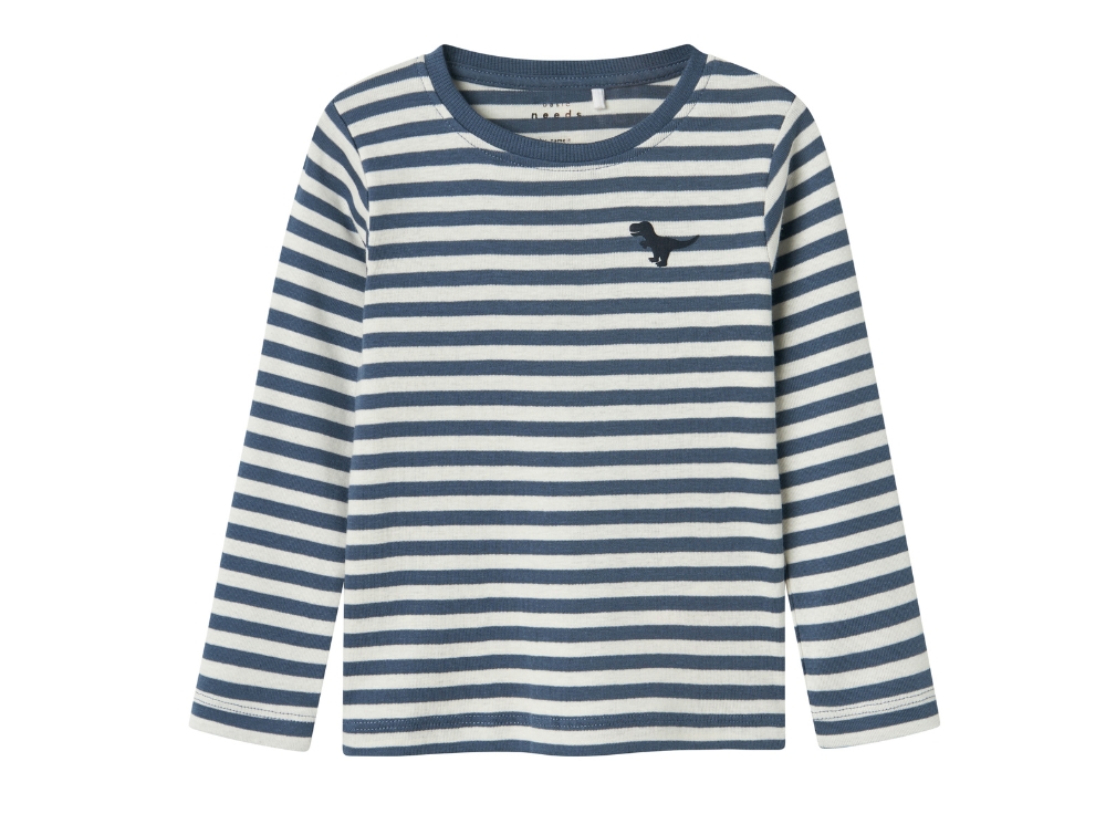 Stribet bluse i farven bering sea med lille dino fra Name It.