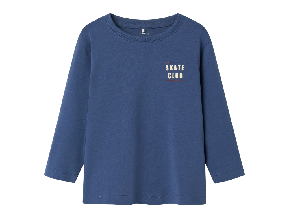 Langærmet top i farven bijou blue med skater tema fra Name It.