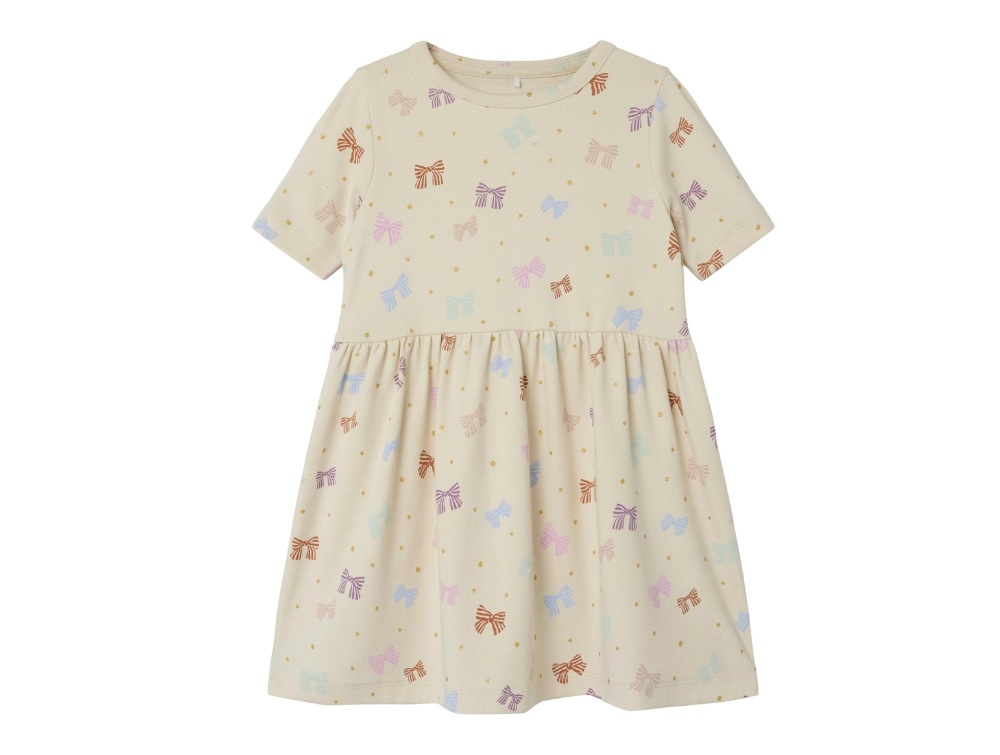 Kortærmet kjole i farven birch med sløjfer fra Name It.