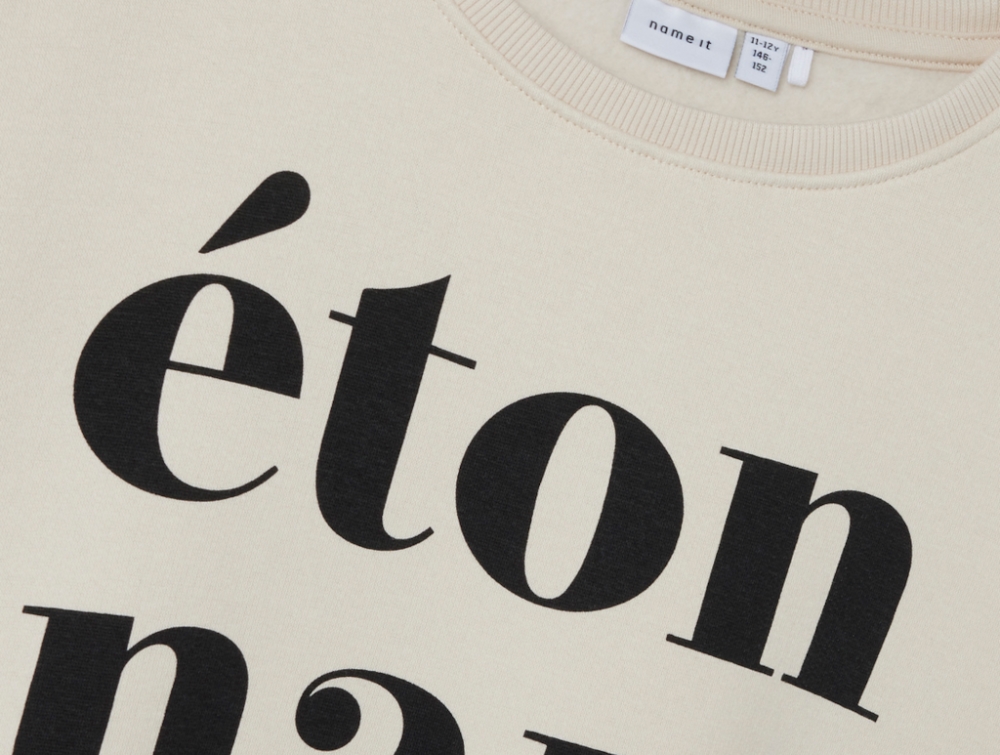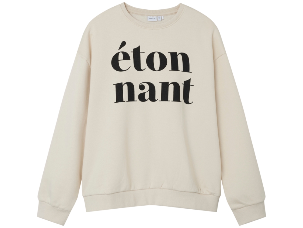 Sweatshirt i farven birch med cool tekst-print på front fra Name It.