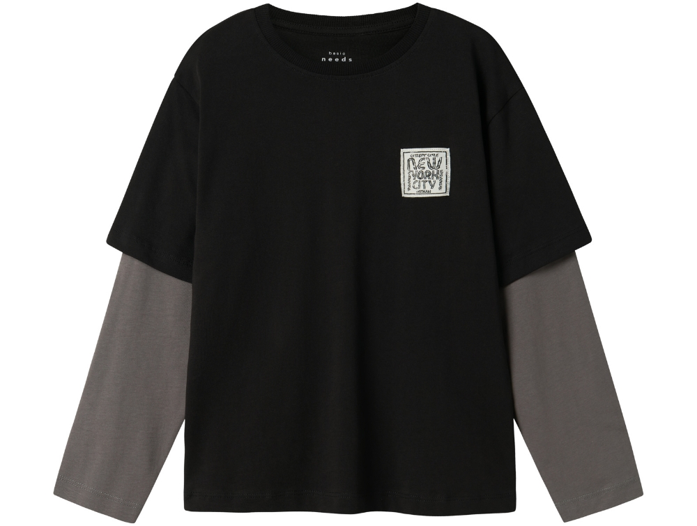 Langærmet t-shirt i farven sort med kontrastærmer fra Name It.