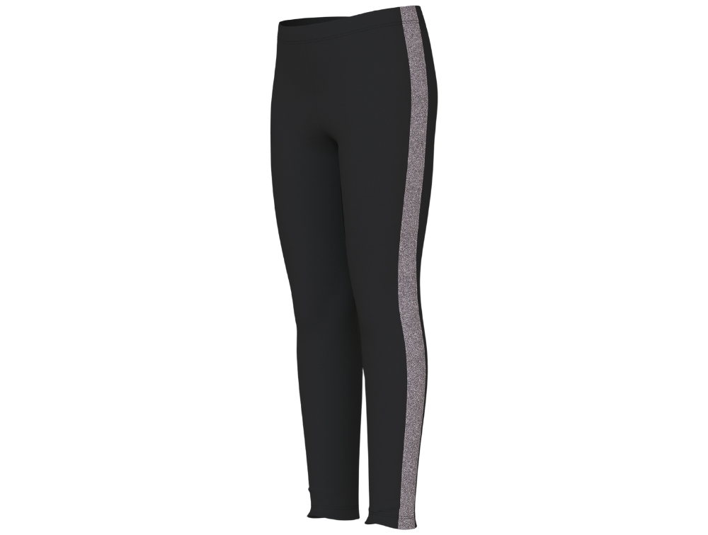 Leggings i farven sort med glitterstribe i farven corsage på siden af hvert bukseben fra Name It.