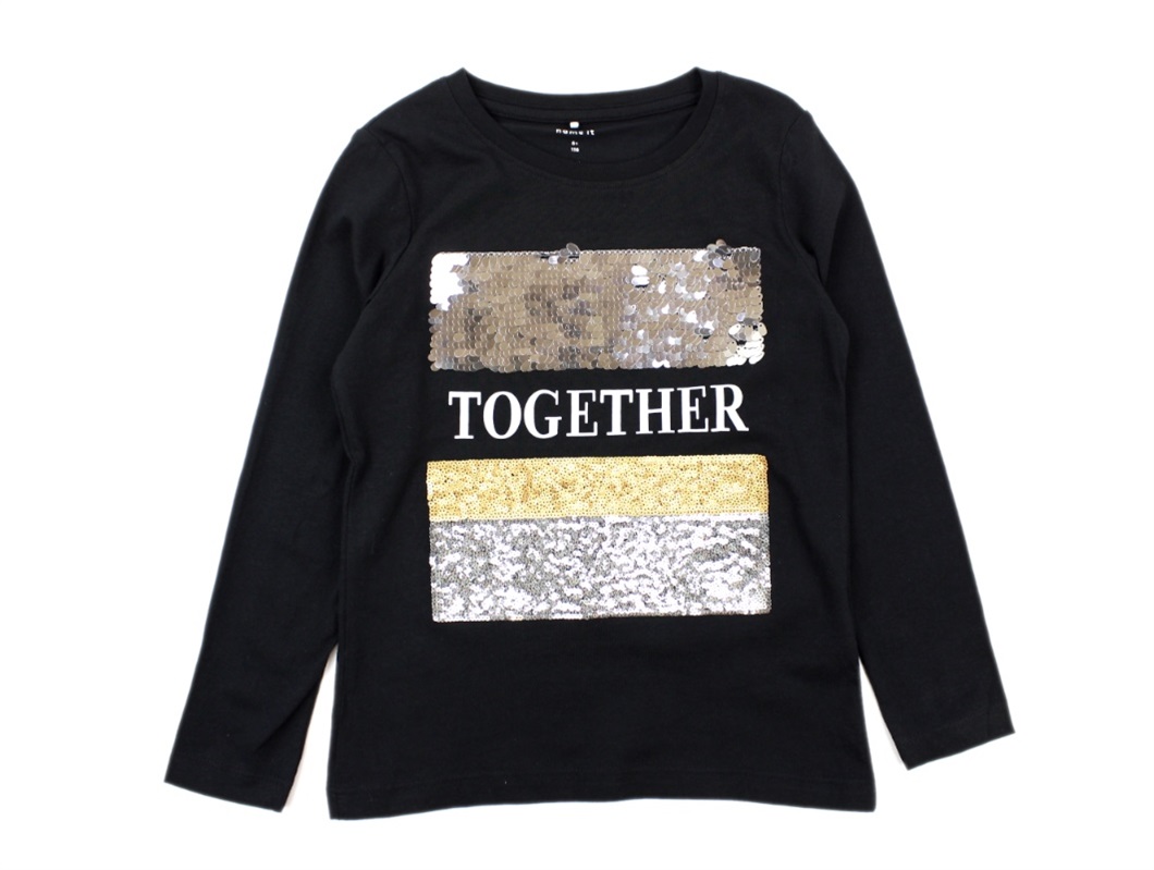 Sort langærmet t-shirt med palietter og teksten 'TOGETHER' fra Name It.