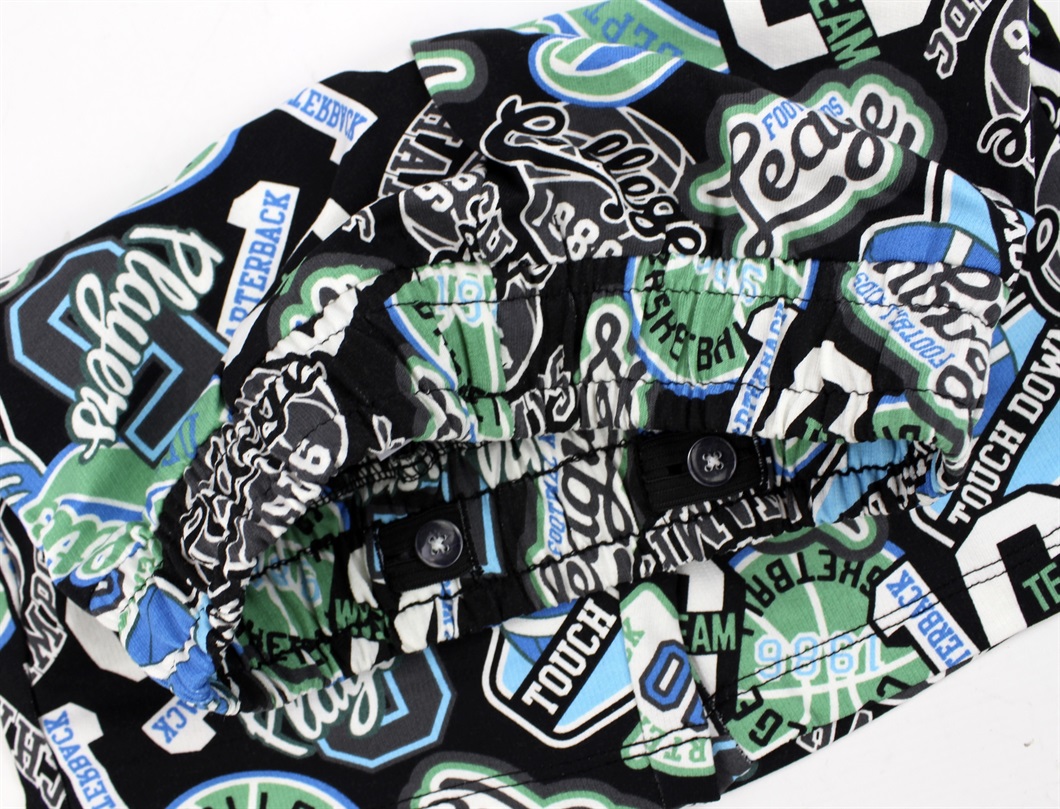 Bukserne har justerbar elastik i linningen og bindebånd samt to sidelommer.