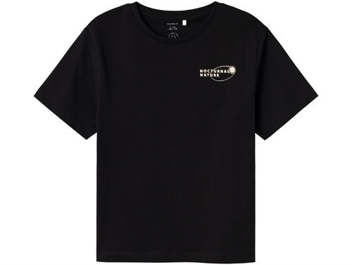 T-shirt i farven sort med cool tekstprint på front og ryg fra Name It.