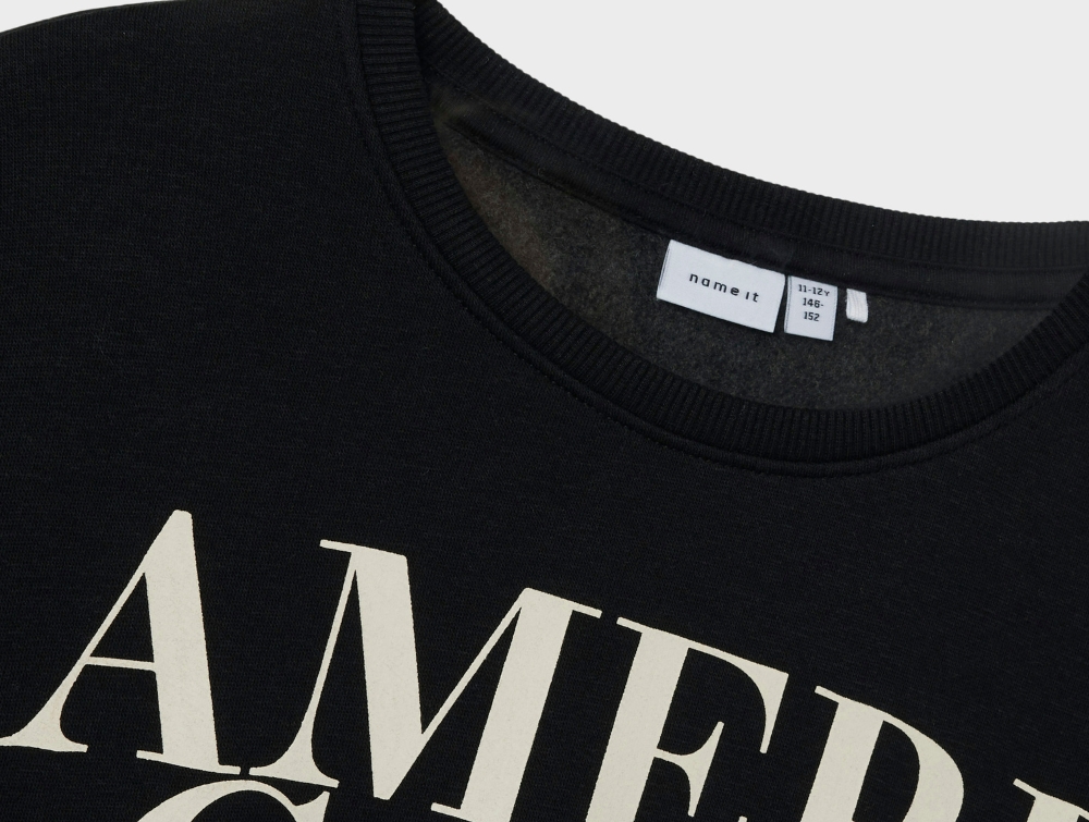 Sweatshirt i farven sort med cool tekst-print på front fra Name It.