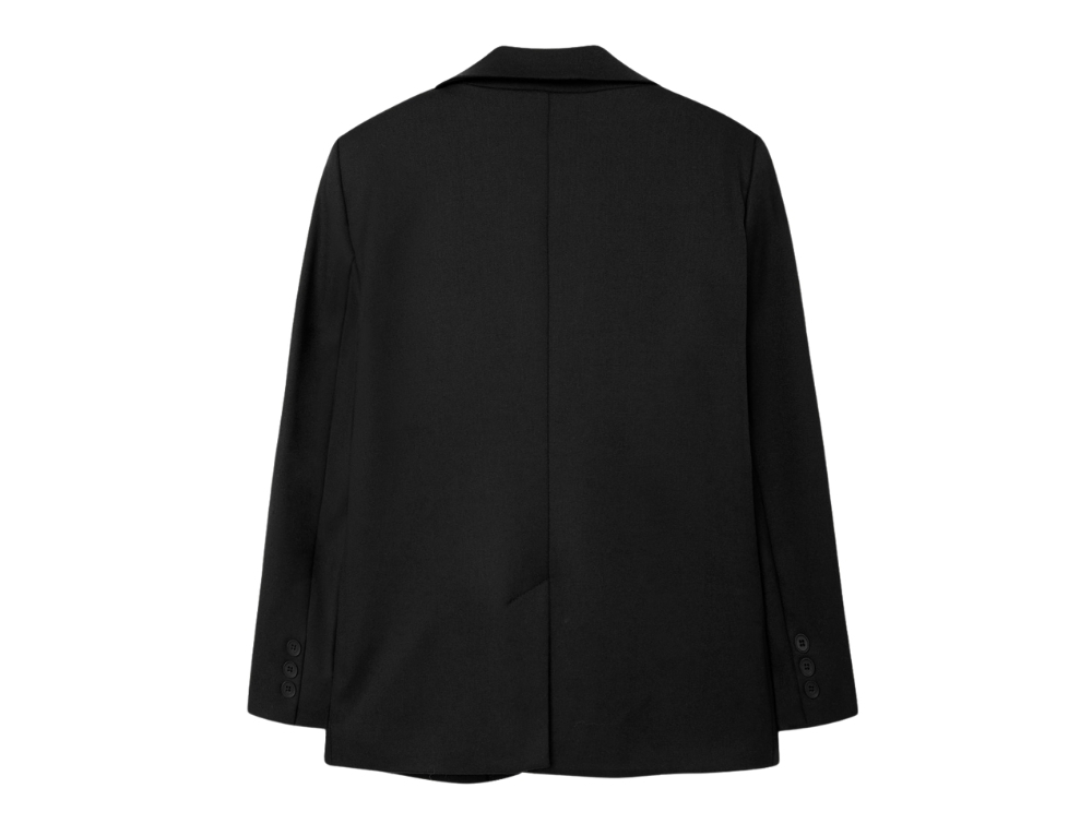 Name It blazer i sort til børnName It sort blazer til børn med knaplukningName It blazer sort detalje af knap og stofName It blazer sort set bagfra