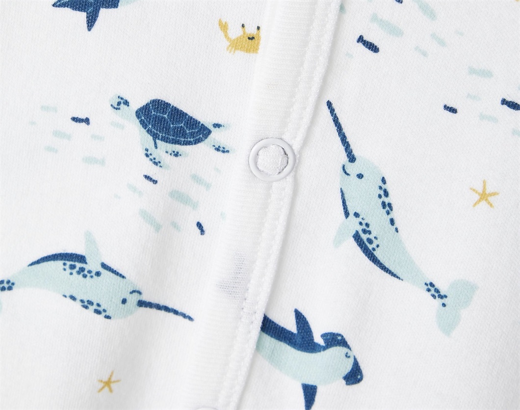 Pakken indeholder én natdragt i farven blue haze med skilpaddemotiv og én natdragt i hvid med havdyr.
