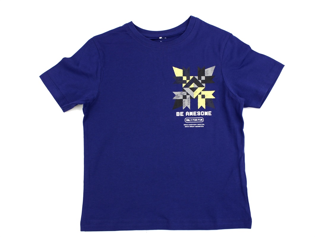 Loose t-shirt i farven blueprint med cool print på front og ryg fra Name It.