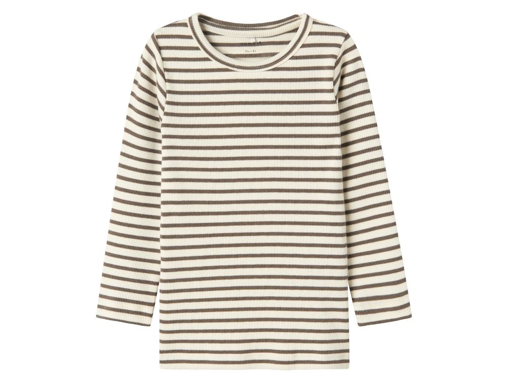 Klassisk langærmet rib t-shirt med striber i farven bungee cord melange fra Name It.