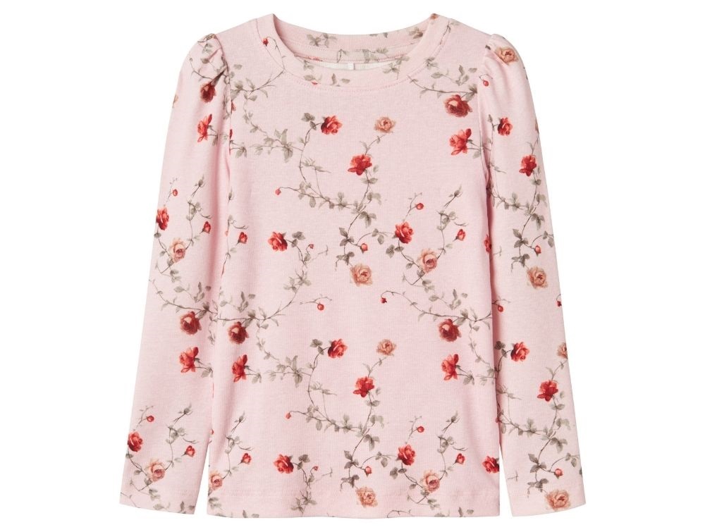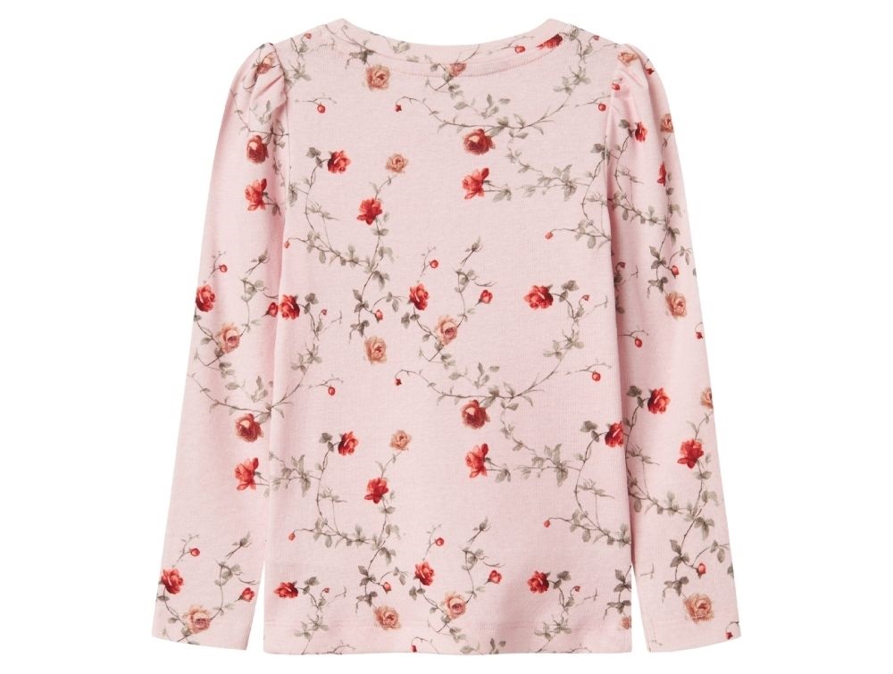 Langærmet bluse i lyserød (ballerina) med print af roser fra Name It.