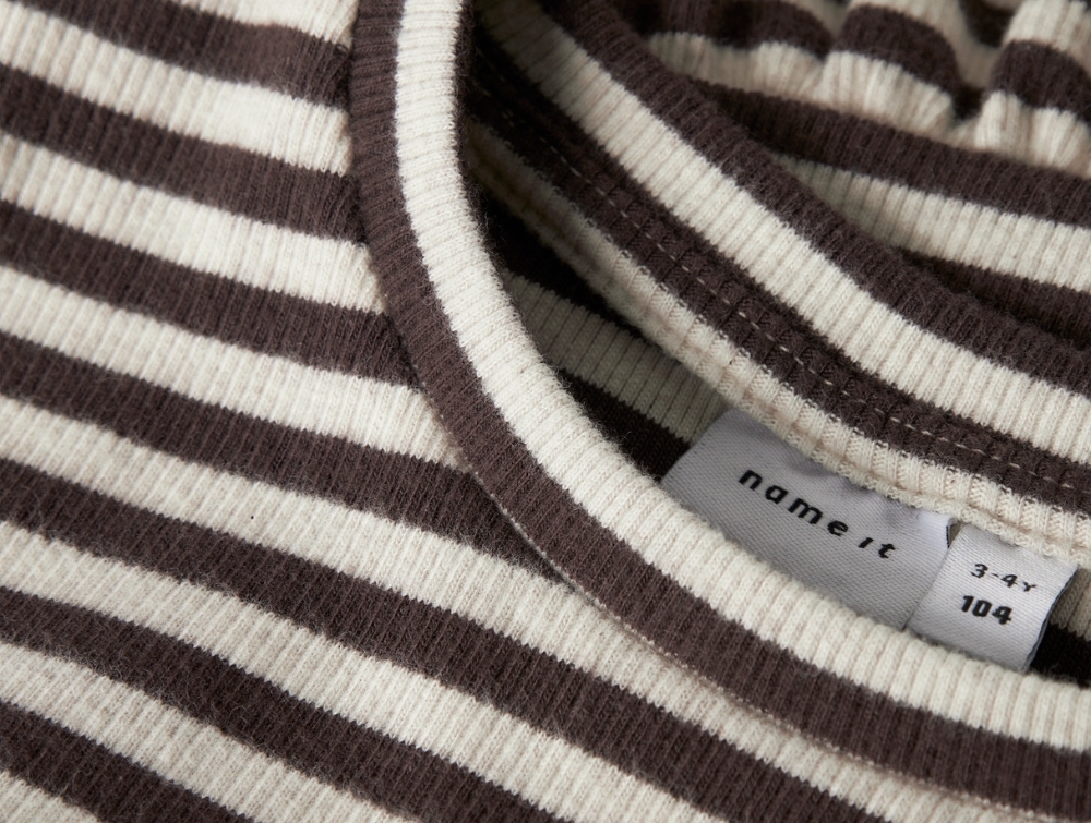 Stribet bluse i brun og råhvid fra Name ItDetalje af stribet brun og råhvid bluse fra Name It