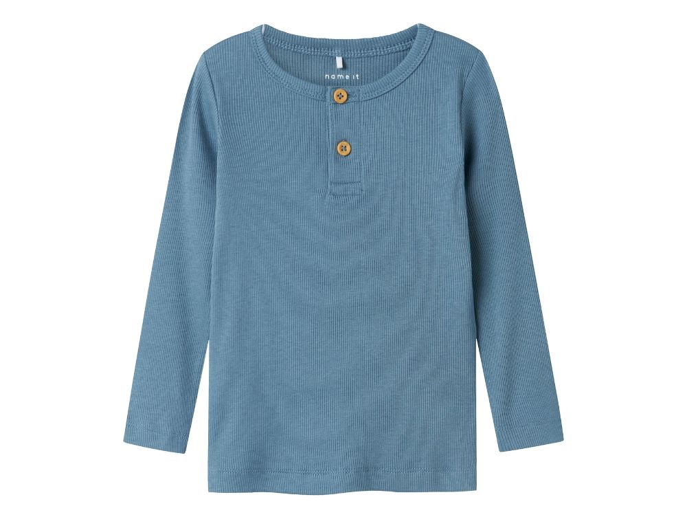 Klassisk langærmet rib t-shirt i farven spring lake fra Name It.