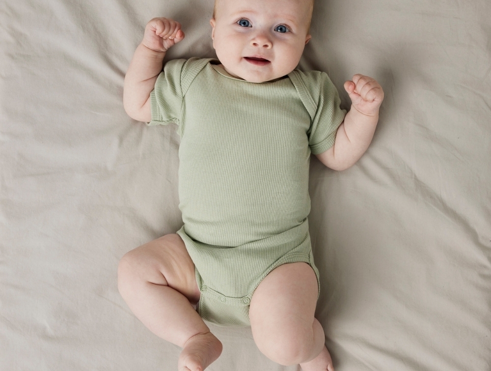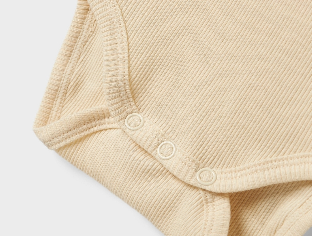 Fremstillet i blød, åndbar og strækbar bomuldsrib med økologisk bomuld, der føles behagelig mod babyens hud. Perfekt til varme dage eller som inderste lag.