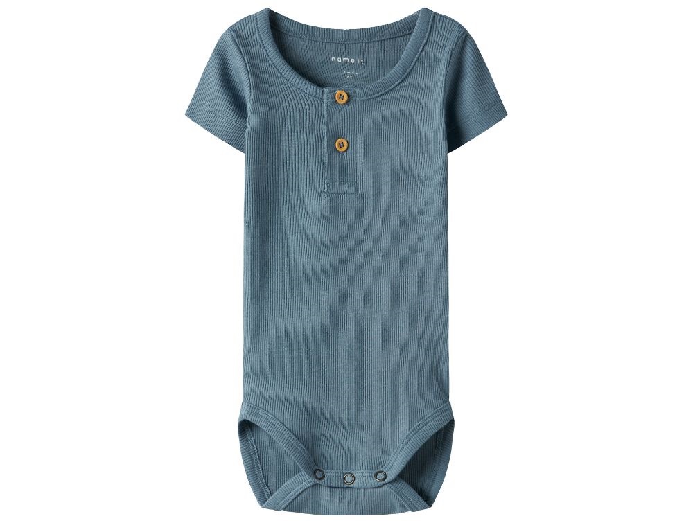 Forny din babys garderobe med denne klassiske kortærmede body i en blå nuance fra Name It. Bodystockingen er fremstillet af en blød blanding af økologisk bomuld, modal og elastan, der giver en behagelig og strækbar kvalitet.